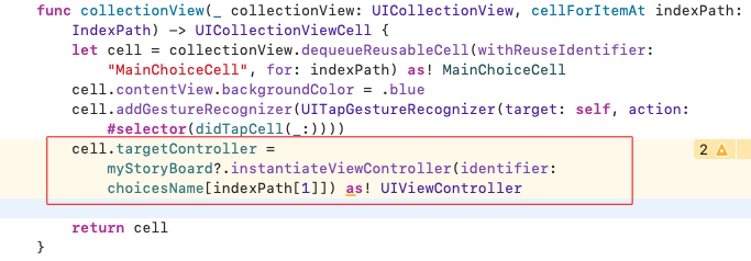 let cell = collectionView.cellForItem(at: indexPath) as! MainChoiceCell